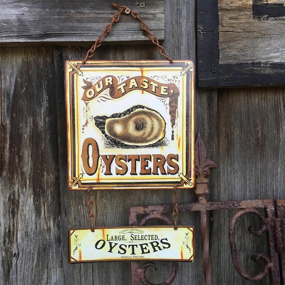 Vintage Oyster Bar Metal Sign: 1890s Can Label Art Reproduction