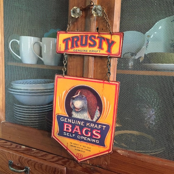 Vintage "Trusty Dog" Metal Sign: 1890s Lithograph Reproduction